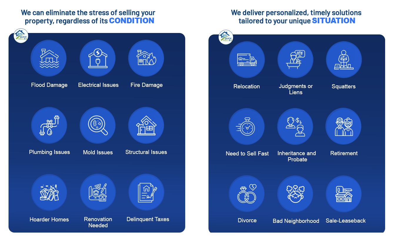 We help divorced couples sell their property & land quickly, providing a fair and efficient solution during a challenging time. Turning your property into cash allows for a clean, 50/50 split or other court-ordered decree, helping both parties move forward smoothly and stress-free.